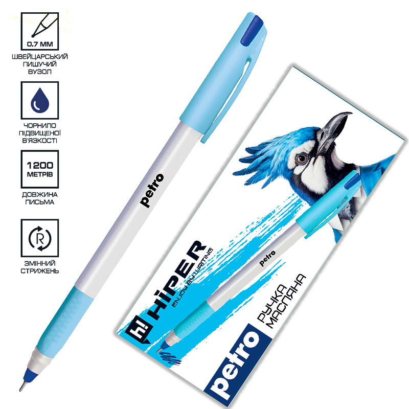 Ручка кульк. масл. "Hiper" №HO-340 Petro 0,7мм синя(10)(200)