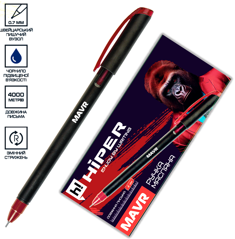 Ручка кульк. масл. "Hiper" №HO-350 Mavr 4км 0,7мм червона(10)