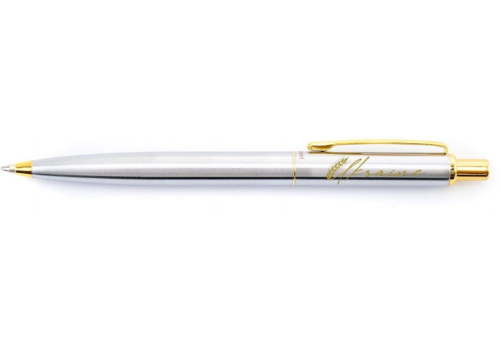 Ручка кульк. "Optima" №O15957-68-1P "Ukraine" срібляста із золотистим