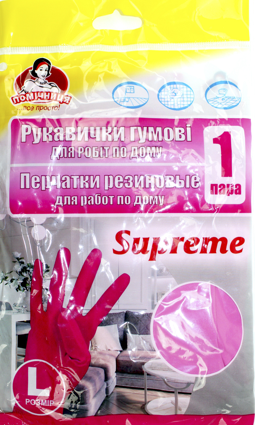 Рукавиці гумові "Помічниця" Supreme, L,фуксія №8/4216(12)(72)(144)