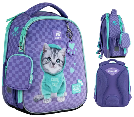 Рюкзак зовні: запатентована ортопедична спинка Ergo Kids; широкі S-подібні лямки; 2 відділення; 2 бічні кишені; світловідбивні елементи; м'яка ущільнена ручка та текстильна петля; знімний нагрудний ремінь; ущільнене дно з захисним покриттям та ніжками; зносостійкі блискавки, надійна фурнітура; знімний гаманець на карабіні. Рюкзак всередині: роздільники з фіксуючою резинкою; кишені для планшета та телефона з плюшевою підкладкою; органайзер; знімна ключниця, поле для персональних даних; навігаційні значки. Декор: плюшева панель, гумовий брелок-підвіска
