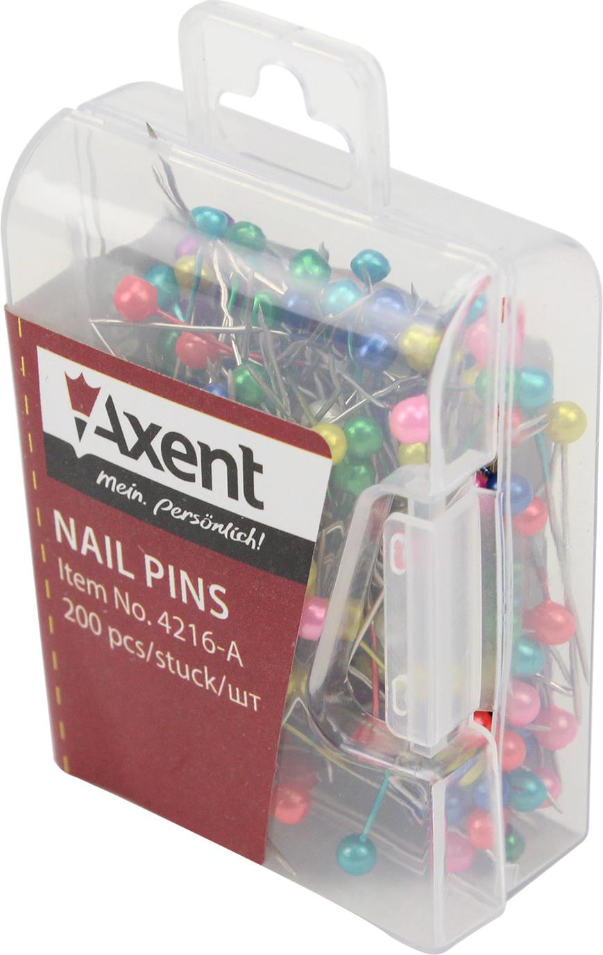Шпильки офісні "Axent" №4216 кольорові 34мм 200шт пласт. контейнер(12)