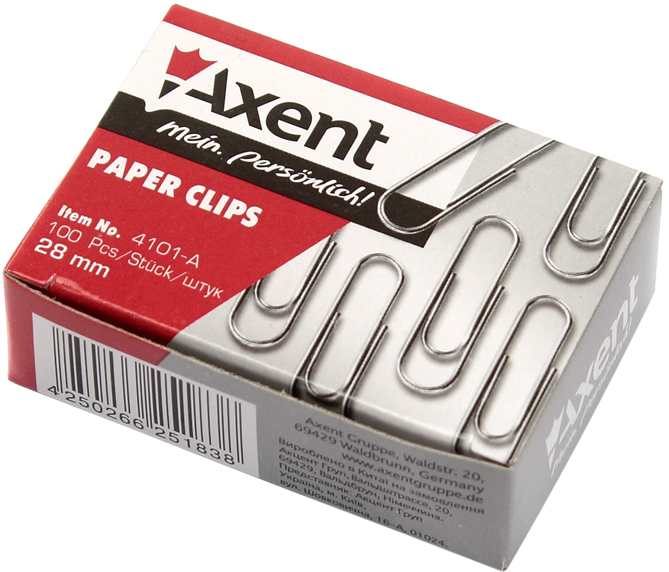 Скріпки "Axent" №4101 28мм (100шт) круг. нікель(20)(240)