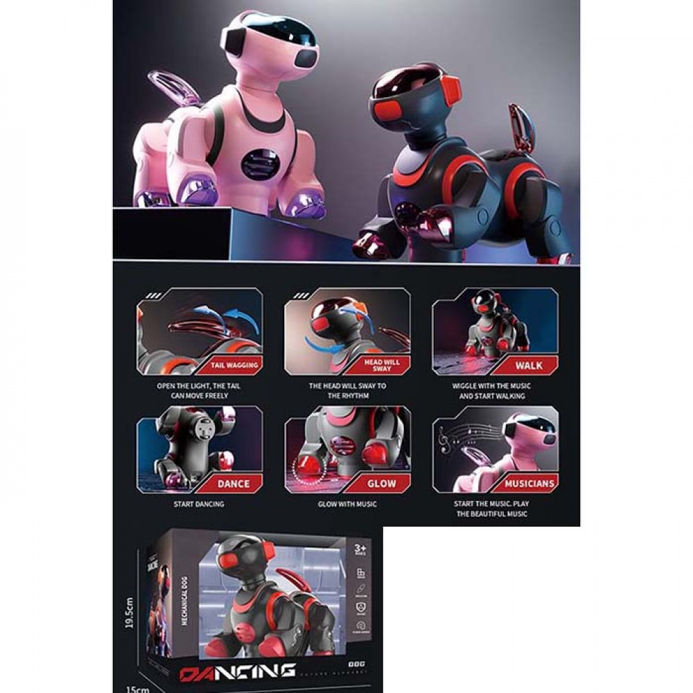 Собака 19см,на бат-ці,звук,світ.,їздить,танцює,рухливі голова та хвіст,в кор-ці№8216-1(18)