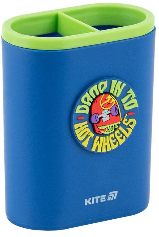 Стакан-підставка з фігуркою Kite. Стильний дизайн з об'ємною фігуркою. Розділений на 2 відсіки з для зручного розподілення письмового приладдя. Міцний пластиковий корпус має приємну на дотик поверхню. Особливості: • надійний пластиковий корпус; • зручна конструкція; • 2 відсіки – для охайного розподілення та письмового приладдя; • компактний розмір 4.7х8.3х10.4 см; • трендовий дизайн з об'ємною soft PVC фігуркою; • улюблена дитяча ліцензія Hot Wheels – для натхнення.