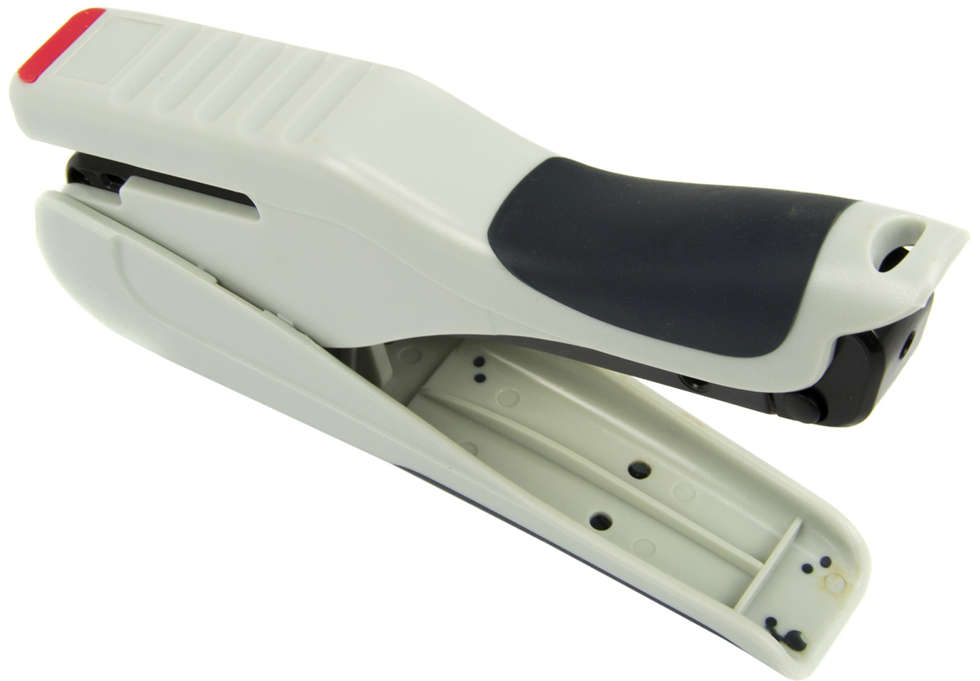 Енергозберігаючий степлер: спеціальна конструкція знижує і полегшує навантаження при натисканні. Степлер серії Axent Jet забезпечує дуже легке скріплення - вимагає на 70% легше натискання, ніж звичайний степлер. Призначений для ручного або настільного скріплення аркушів паперу. Зроблений з якісного пластику - легкого і міцного, стійкого до навантажень. Зручний у використанні - надійний механізм подачі скоб з міцного металу забезпечує легку подачу скоб в робочу зону, скріплення без осічок і просту заміну скоб. Має віконце для контролю наявності скоб. Є можливість зміни способу скріплення з закритого на відкрите - натисненням кнопки на підошві степлера.