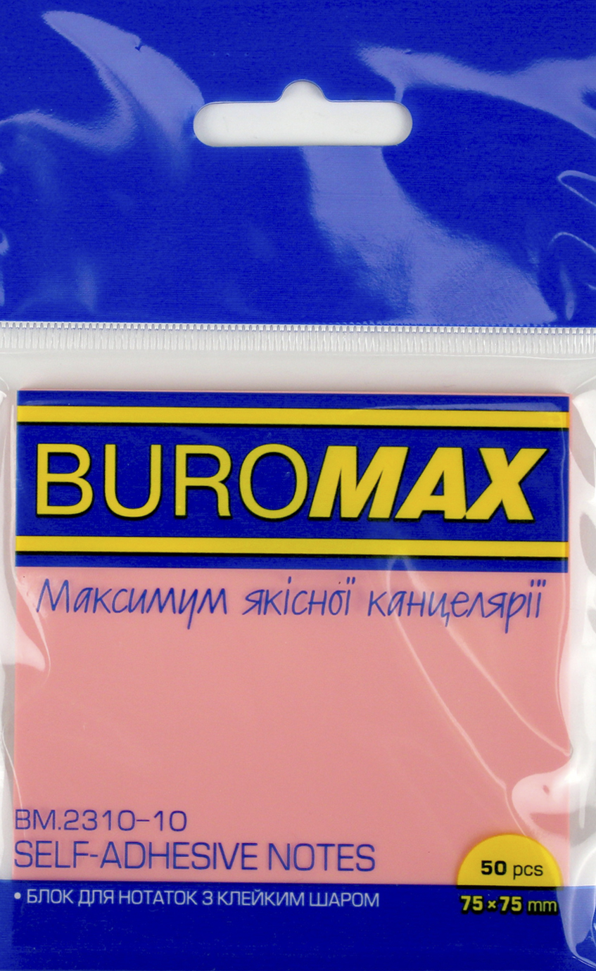 Стікери пласт. з липк. краєм 75х75мм 50арк. прозоро-рожевий "Buromax" №BM.2310-10(12)(240)