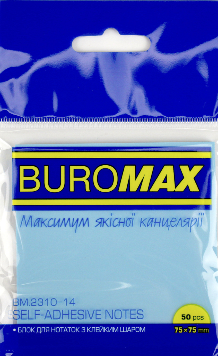 Стікери пласт. з липк. краєм 77х75мм 50арк. прозоро-блакитний "Buromax" №BM.2310-14(12)