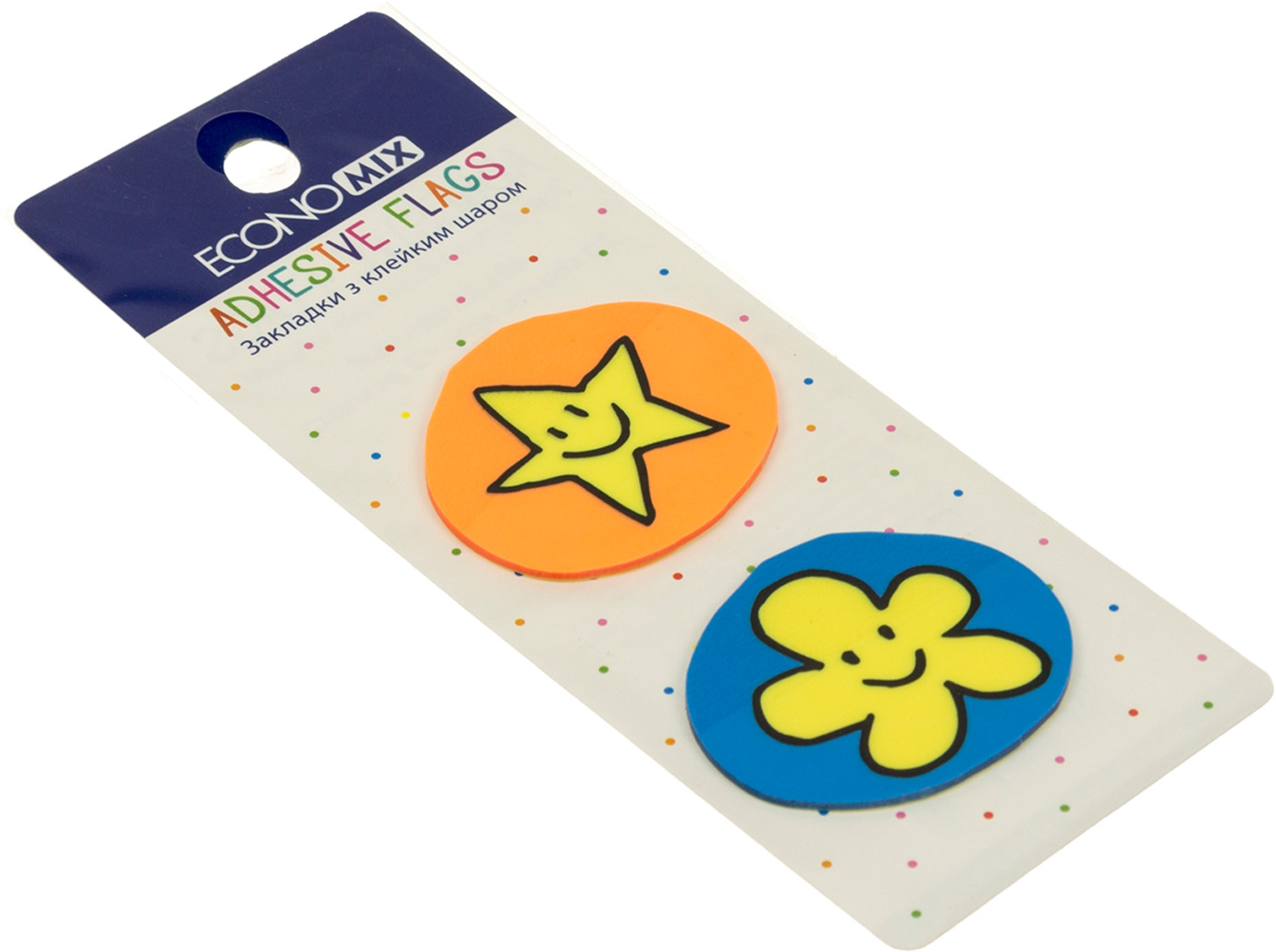 Стікери-закладки пласт. "Economix" Fun flower and star 35х40мм 40шт асорті №E20969-02(48)