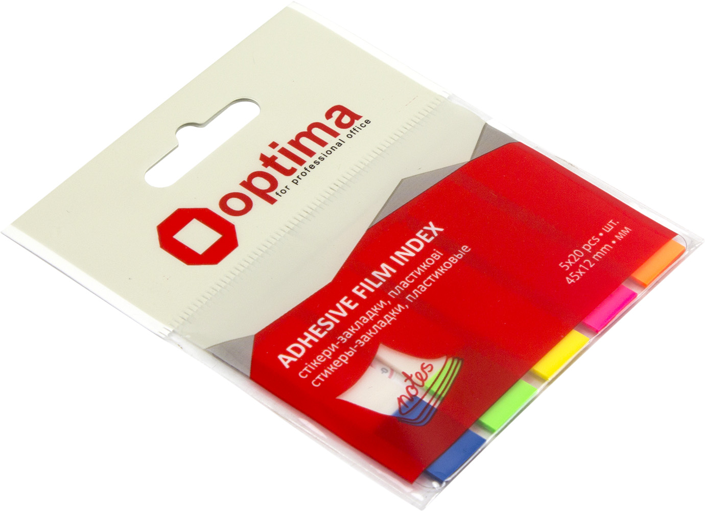 Стікери-закладки пласт. "Optima" 45х12мм 100арк. №O25531(24)