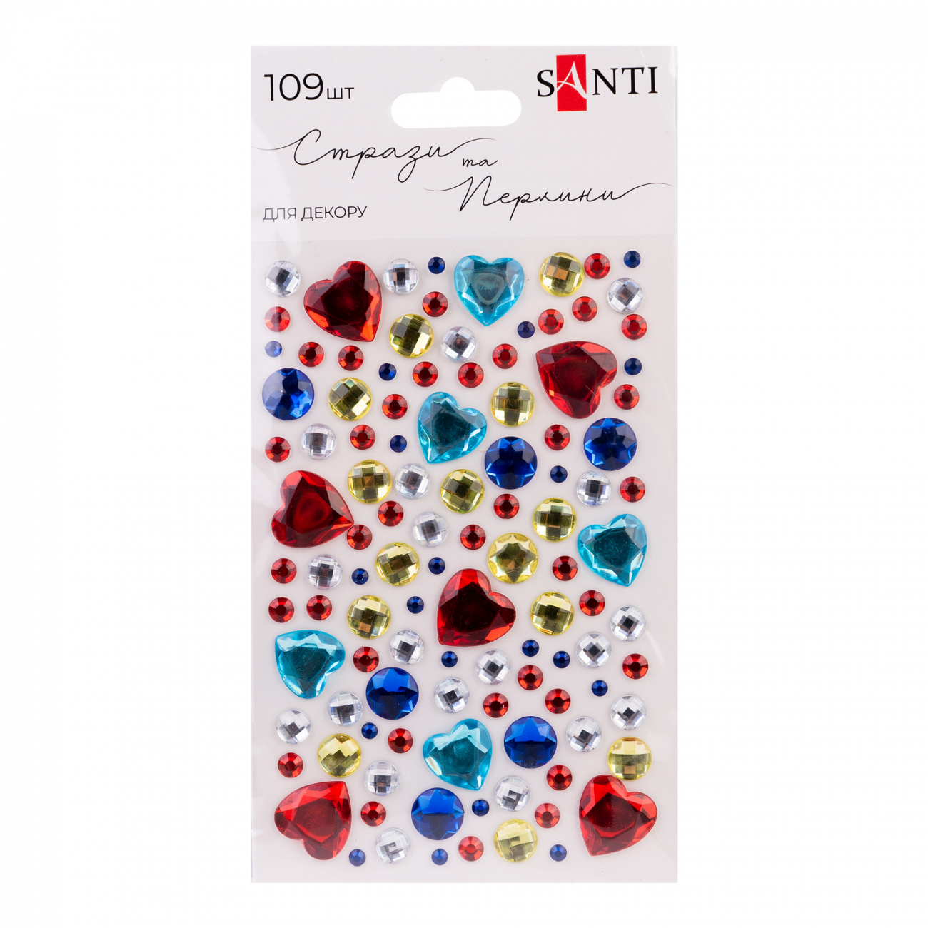 Стрази самокл. "Santi" "Heart mix" різнлкольорі 109шт №743009(12)