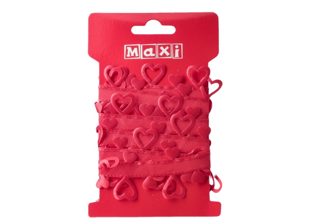 Стрічка декор. 1м з серцями,червона №BJ21-05014