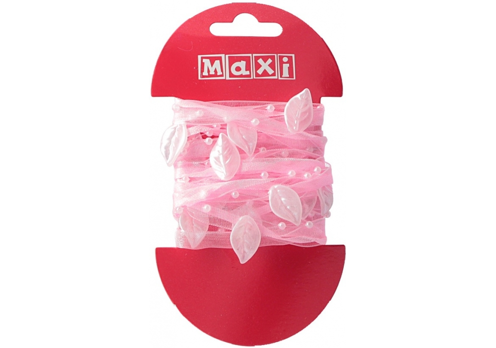 Стрічка декор. 2м з листочками та намистинками,рожева №BJ21-05013