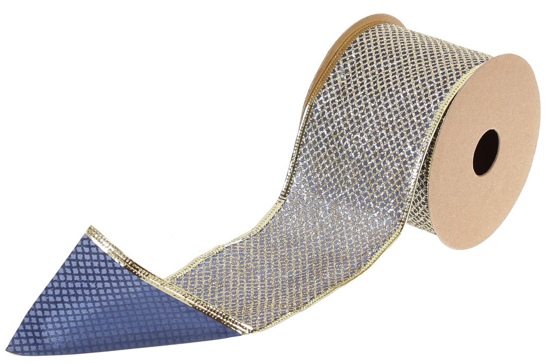 Стрічка декор. із сітчастим візерунком 6,3х270см,синій із золотом №821-089/Bonadi/(24)(96)