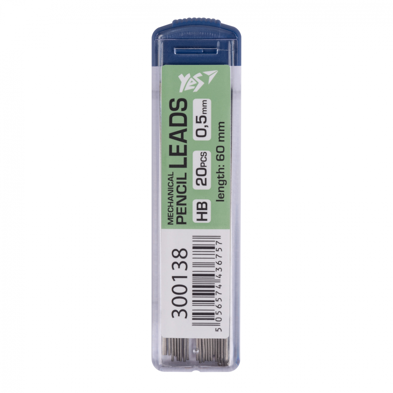 Високоякісний грифель TМ YES для механічних олівців ідеально підходить для механічних олівців TМ YES серії Fusion та інших механічних олівців з товщиною стрижня 0,5 мм. Покращений пластиковий контейнер з кольоровою кришкою дозволяє зручно зберігати, транспортувати та замінювати стрижні. Особливості грифелів ТМ YES: - Твердість грифеля: НB. - Кількість в упаковці: 20 шт - Діаметр стрижня: 0.5 мм - Довжина стрижня: 60 мм - Колір: графітовий