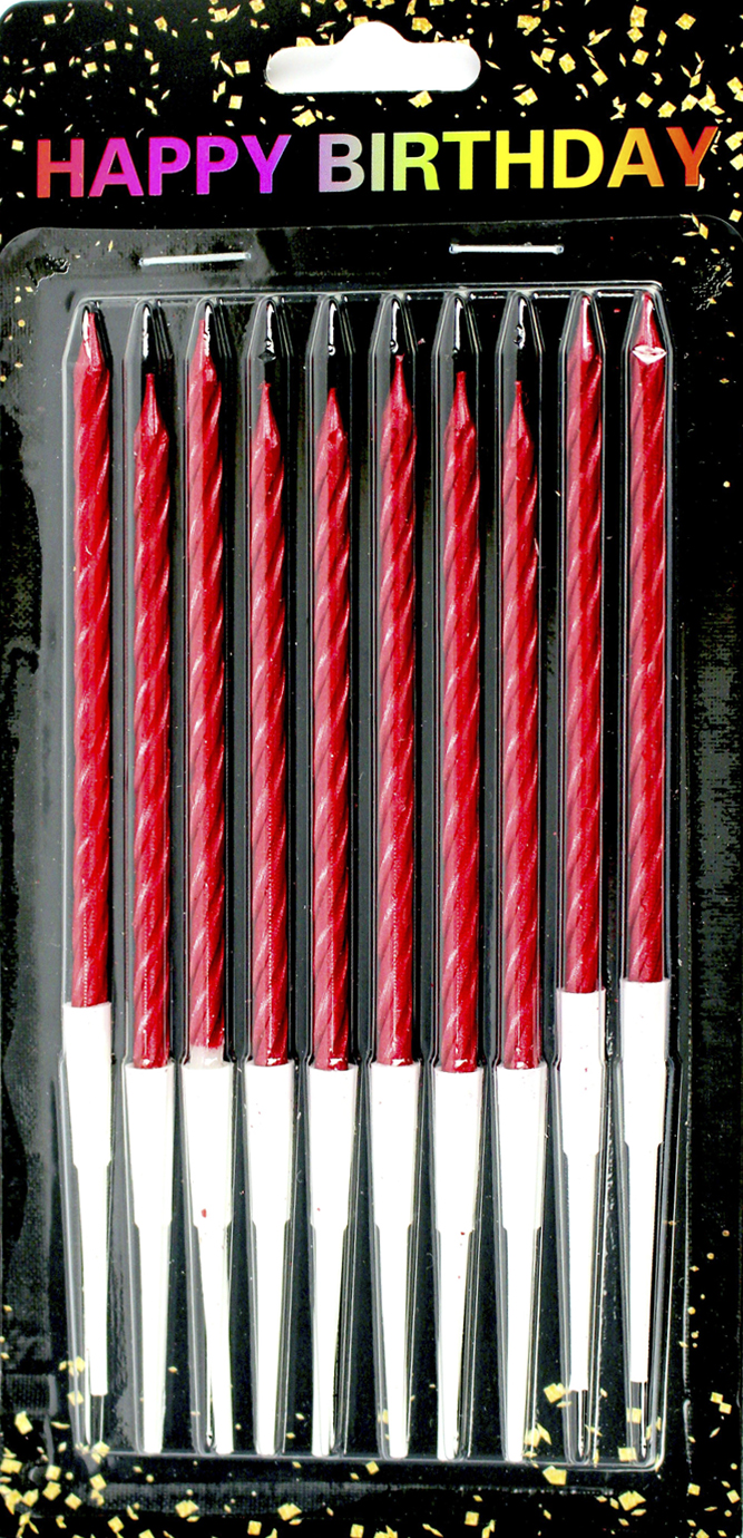 Свічка в торт 10шт+10підсв. "Спіральні" червоні №6735(24)