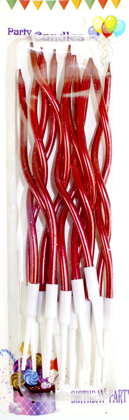 Свічка в торт 12шт+12підсв. "Спіральні" червоні №3803(24)