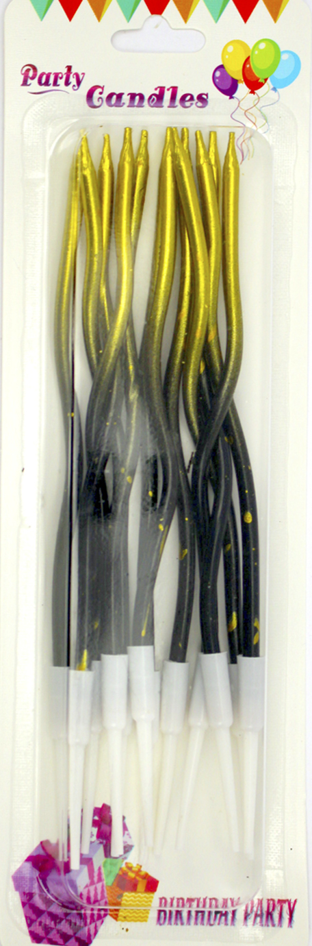 Свічка в торт 12шт+12підсв. "Спіральні" чорно-золота №A6/7025/7028/3803(24)
