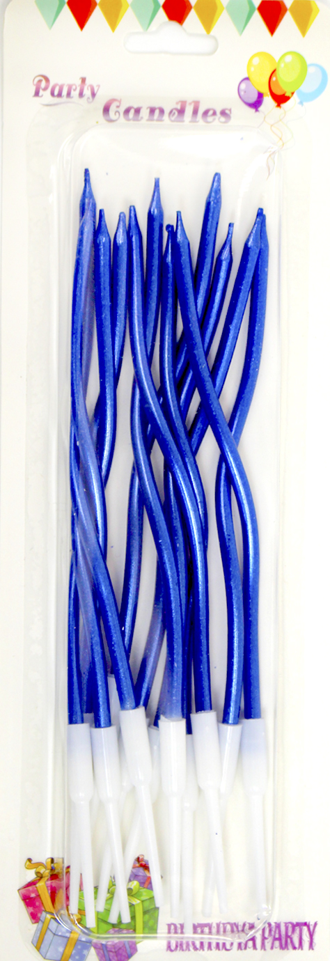 Свічка в торт 12шт+12підсв. "Спіральні" перламутр синя №A6/7025/3803(24)