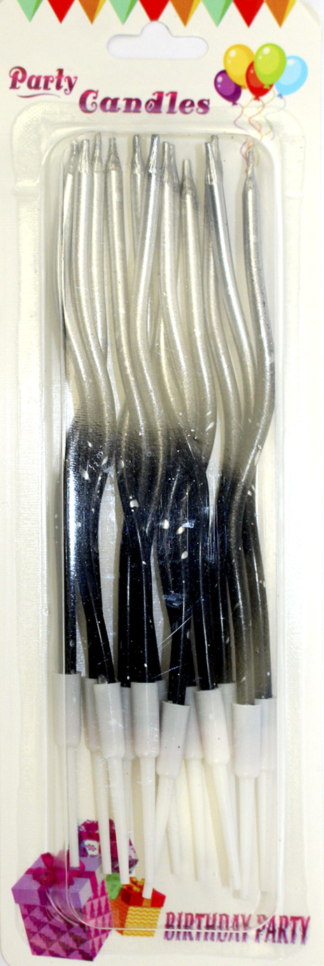 Свічка в торт 12шт+12підсв. "Спіральні" срібло-чорна №A6/7025/7028/3803(24)