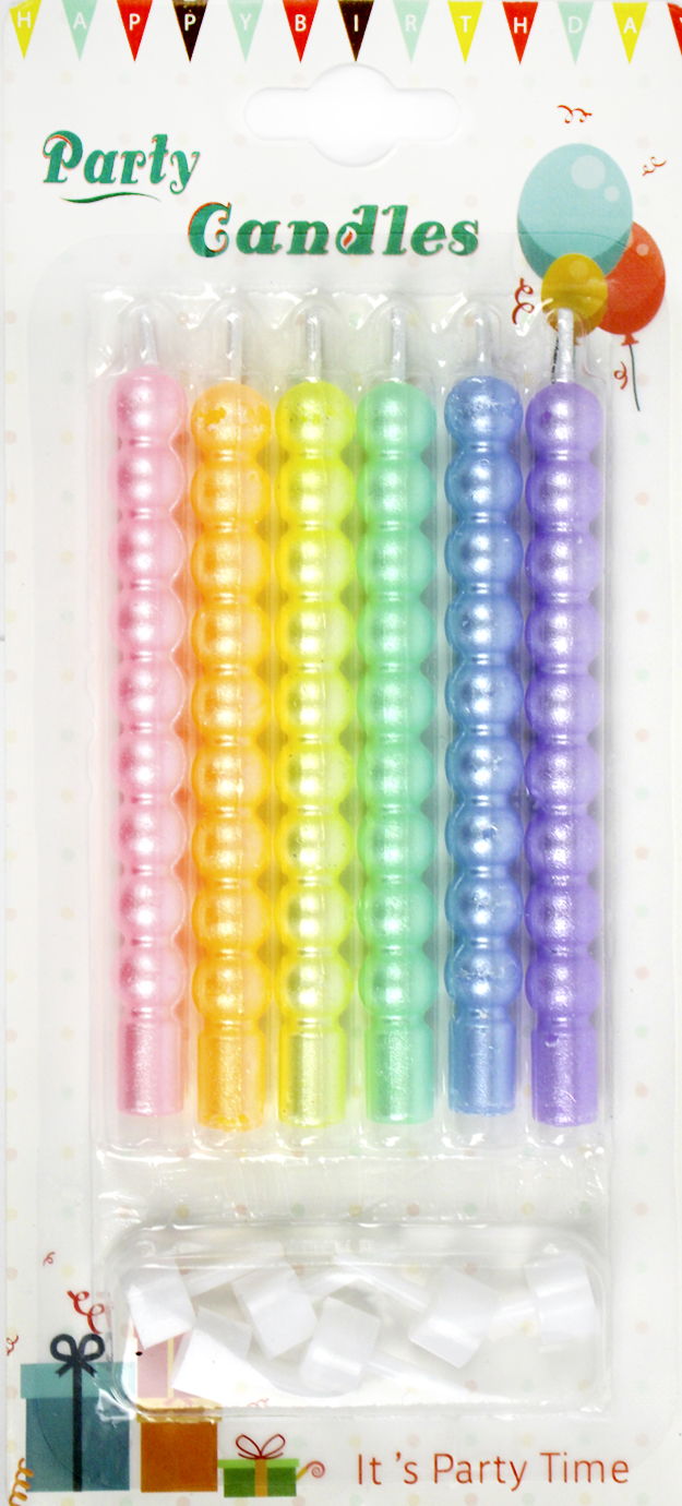 Свічка в торт 6шт+6підсв. "Перлина" кольорова №1574(24)