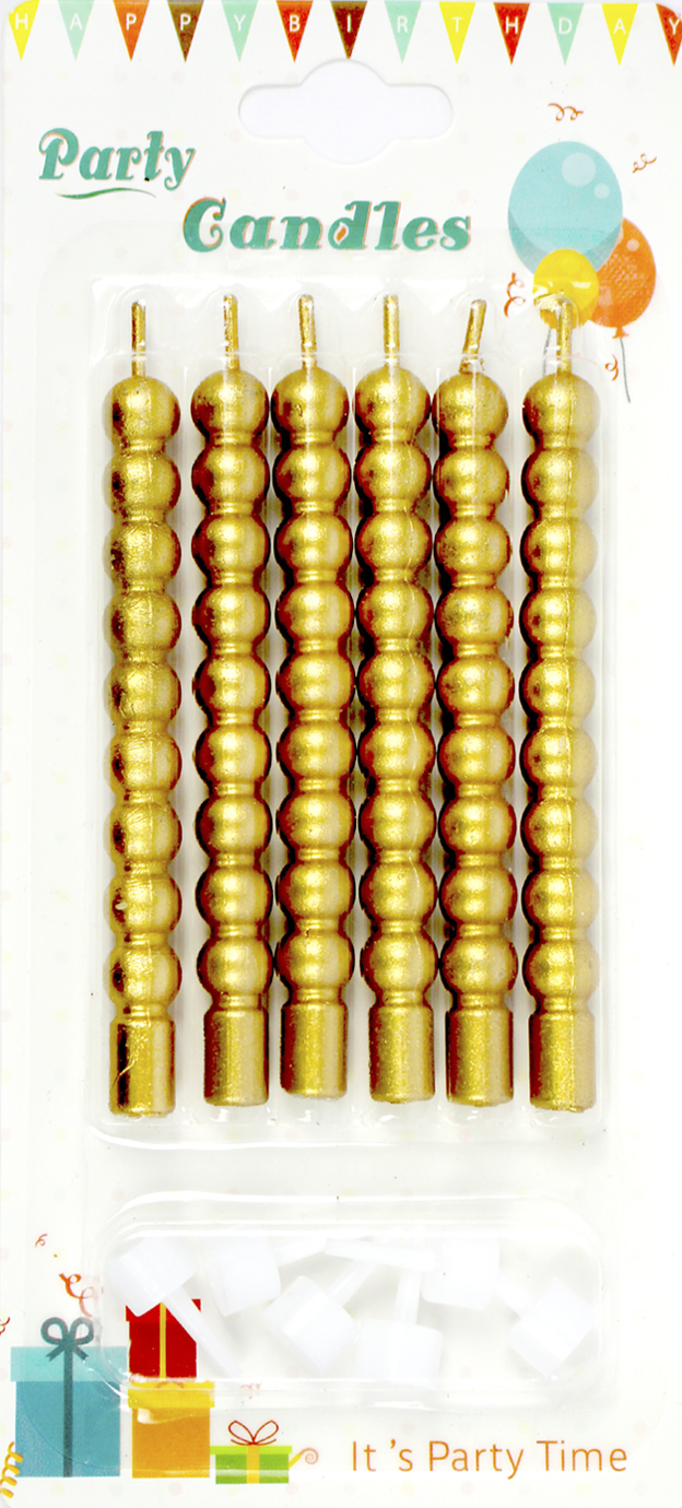 Свічка в торт 6шт+6підсв. "Перлина" золото №1574(24)