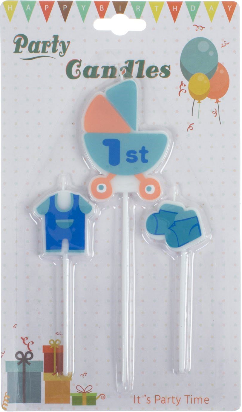 Свічка в торт "Коляска" (3шт) блакитна №1529(24)