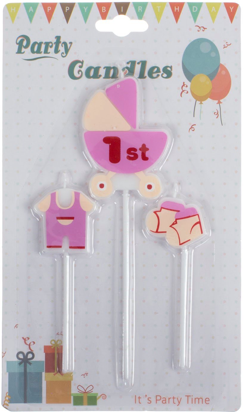Свічка в торт "Коляска" (3шт) рожева №1529(24)