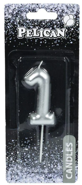 Свічка в торт "Цифра-1" срібло 6см №866021/Pelican/(1)(12)(600)