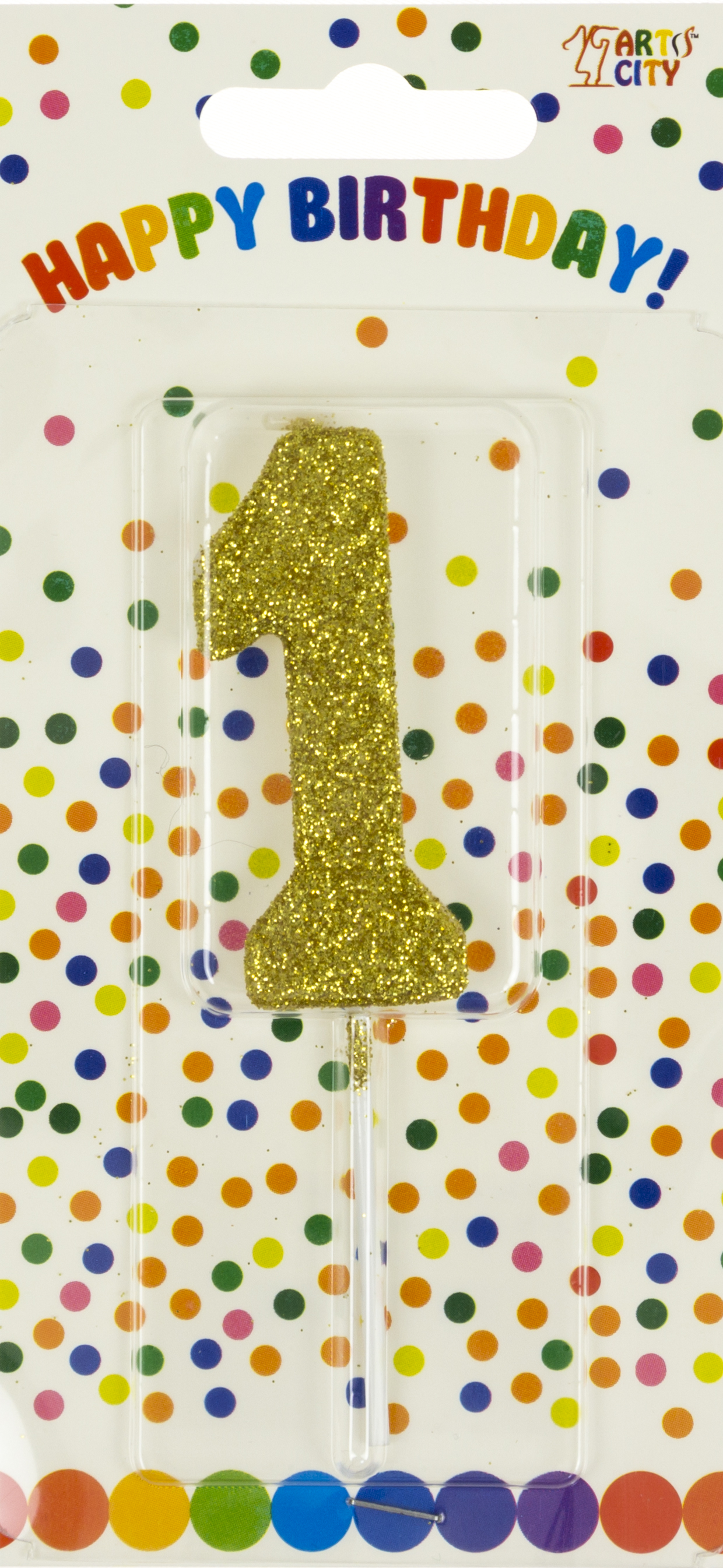 Свічка в торт "Цифра-1" золото на паличці(12)