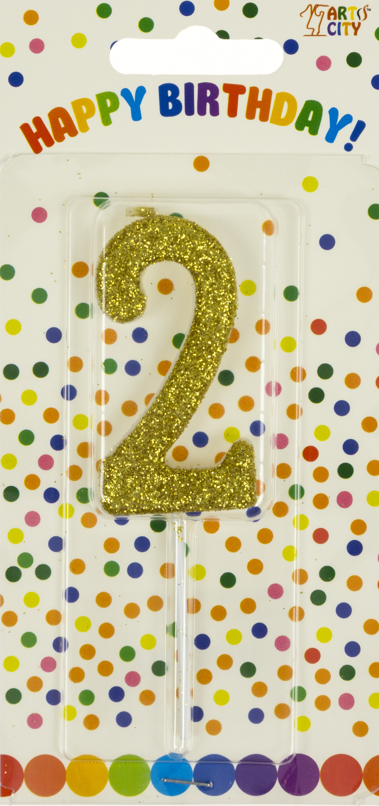 Свічка в торт "Цифра-2" золото на паличці(12)