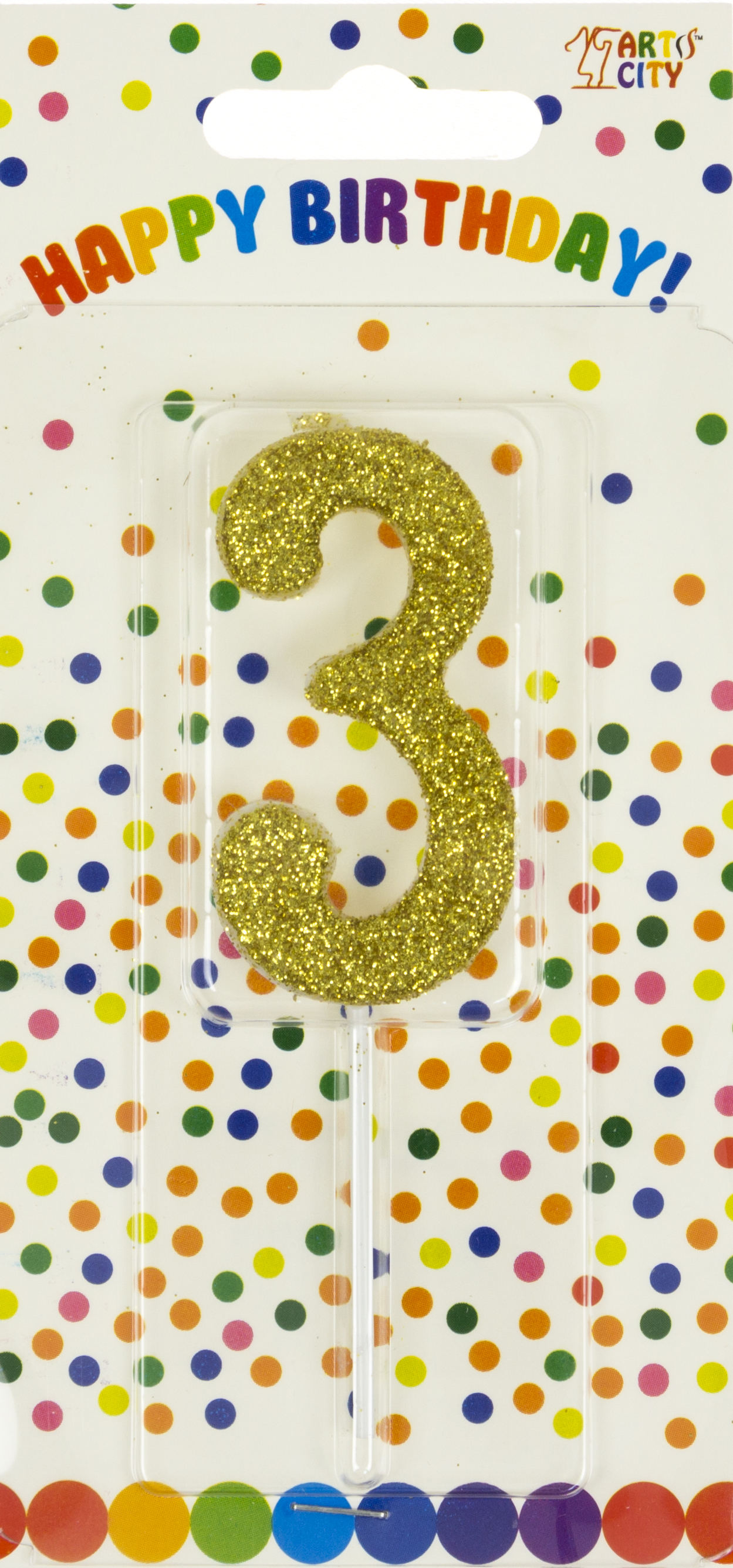 Свічка в торт "Цифра-3" золото на паличці(12)