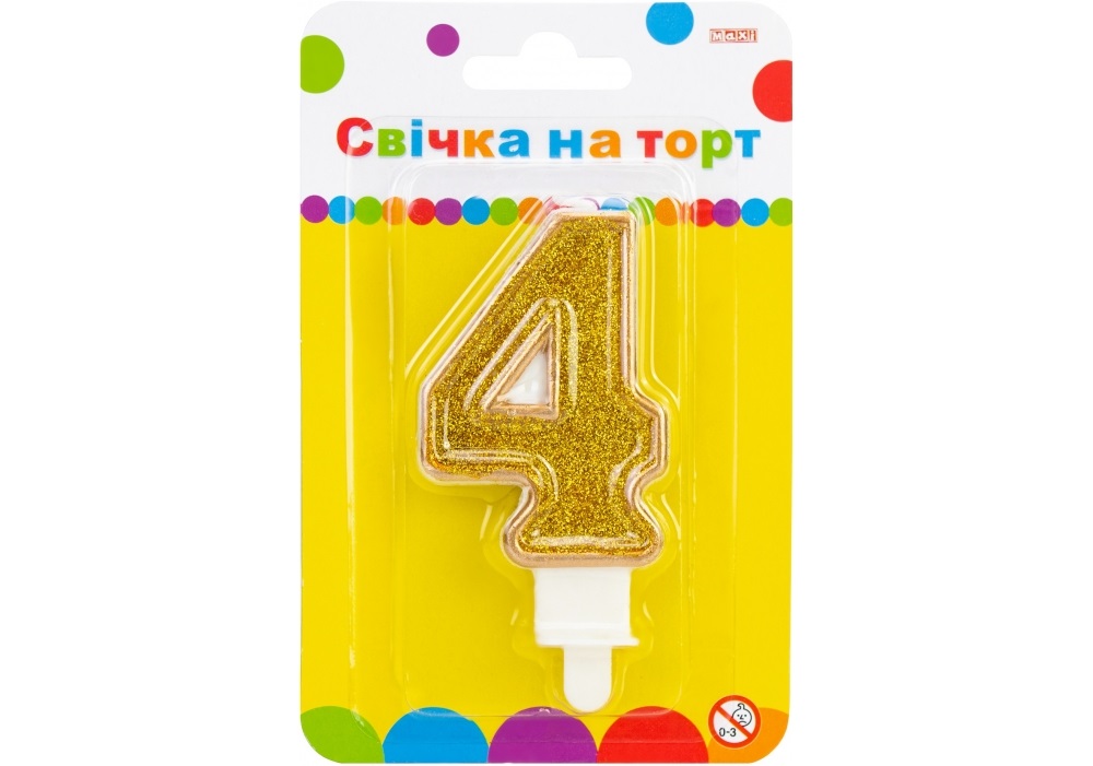 Свічка в торт "Цифра-4" золотиста 7,62см з блискітками №MX622083-4/Maxi/(24)(288)