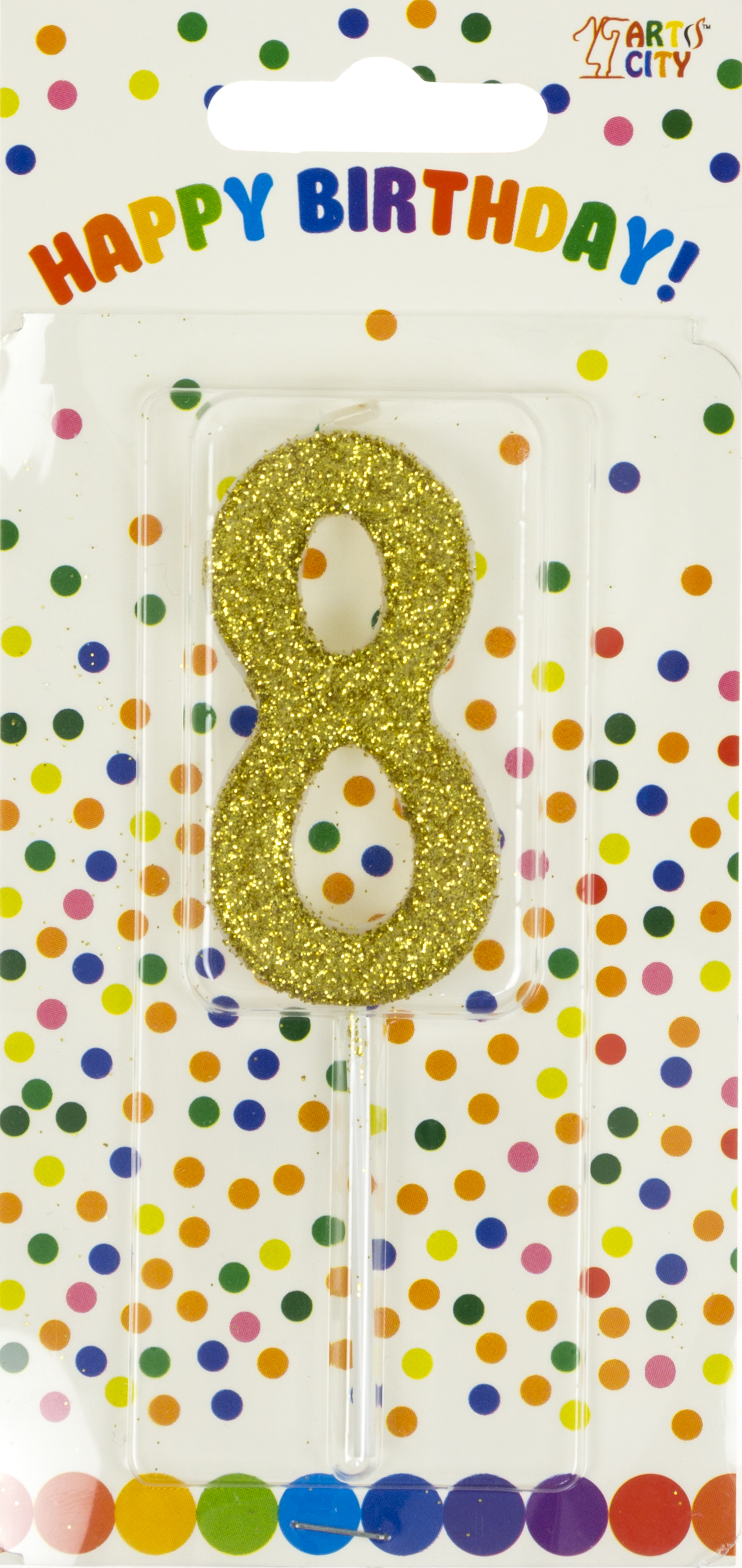Свічка в торт "Цифра-8" золото на паличці(12)