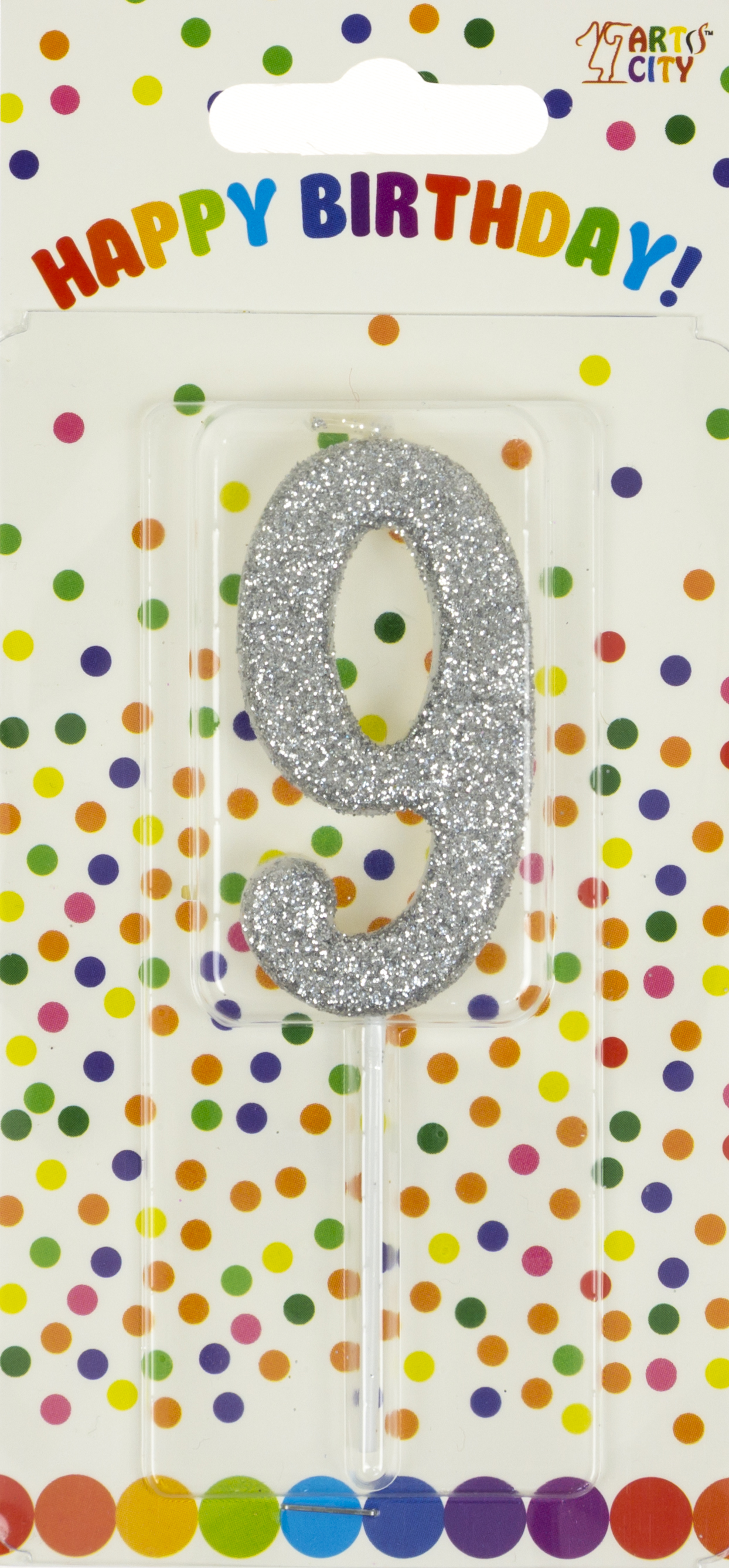 Свічка в торт "Цифра-9" срібло на паличці(12)
