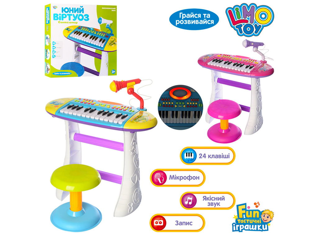Синтезатор,стільчик,мікрофон,муз.,світ.,кор-ці,49х48х11см №BB383BD(8)