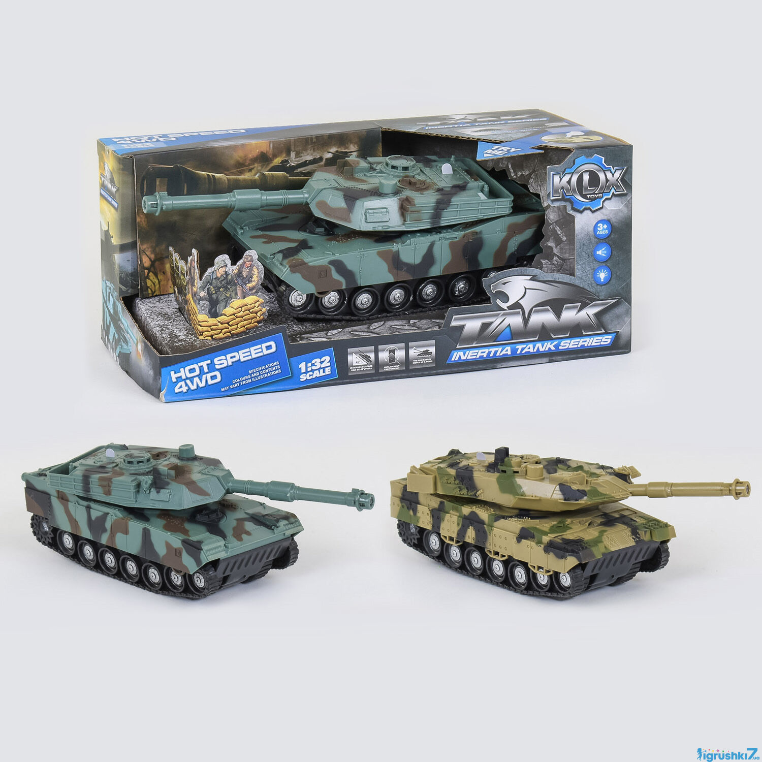 Танк інер-ий,1:32,24см,з дулом,рухомий,світ,звук.,в кор-ці,27,5х12х13,5см №KLX 700-3 A(48)