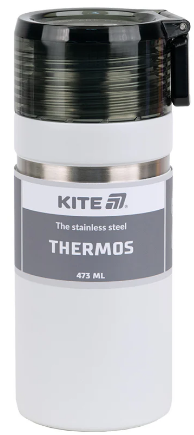 Термос Kite 473 мл. Компактний і зручний. Матеріал: нержавіюча сталь Внутрішня та зовнішня колба зі сталі AISI 304, її хімічний склад та властивості роблять її найбільш придатною для використання у харчовій промисловості. Добре утримує тепло. Надійніший та міцніший за термос зі скляною колбою. Має функціональну чашку. Розмір: 193x75x81мм