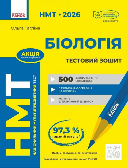 Тести НМТ А4: Біологія.Тестовий зошит. НМТ 2026 №Ш178114У/Ранок/(10)