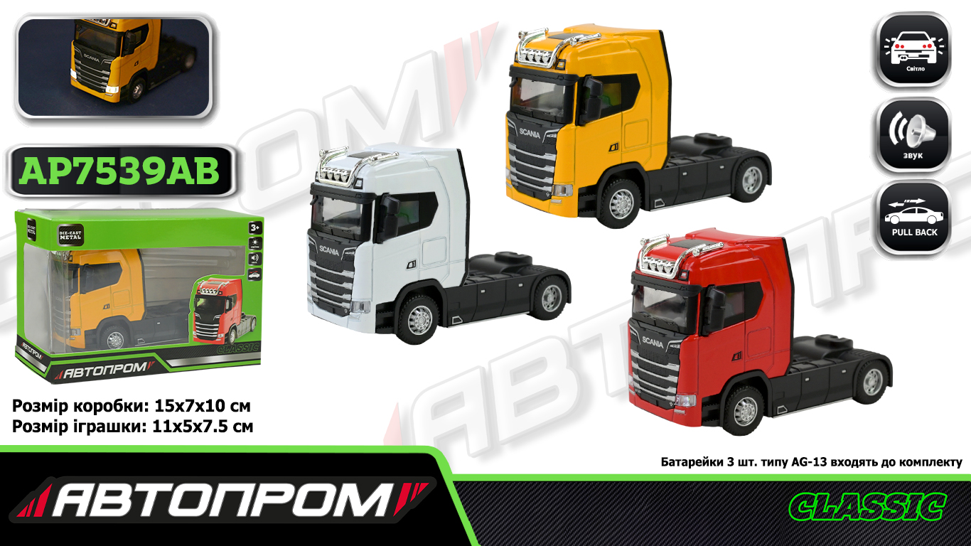 Трейлер метал. "Автопром" на бат-ці,світ.,звук,в кор-ці,15х7х10см №AP7539AB КІ