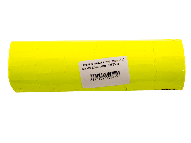 Цінник клейкий в рул. мал. А12 6м 26х12мм жовтий(6)(504)