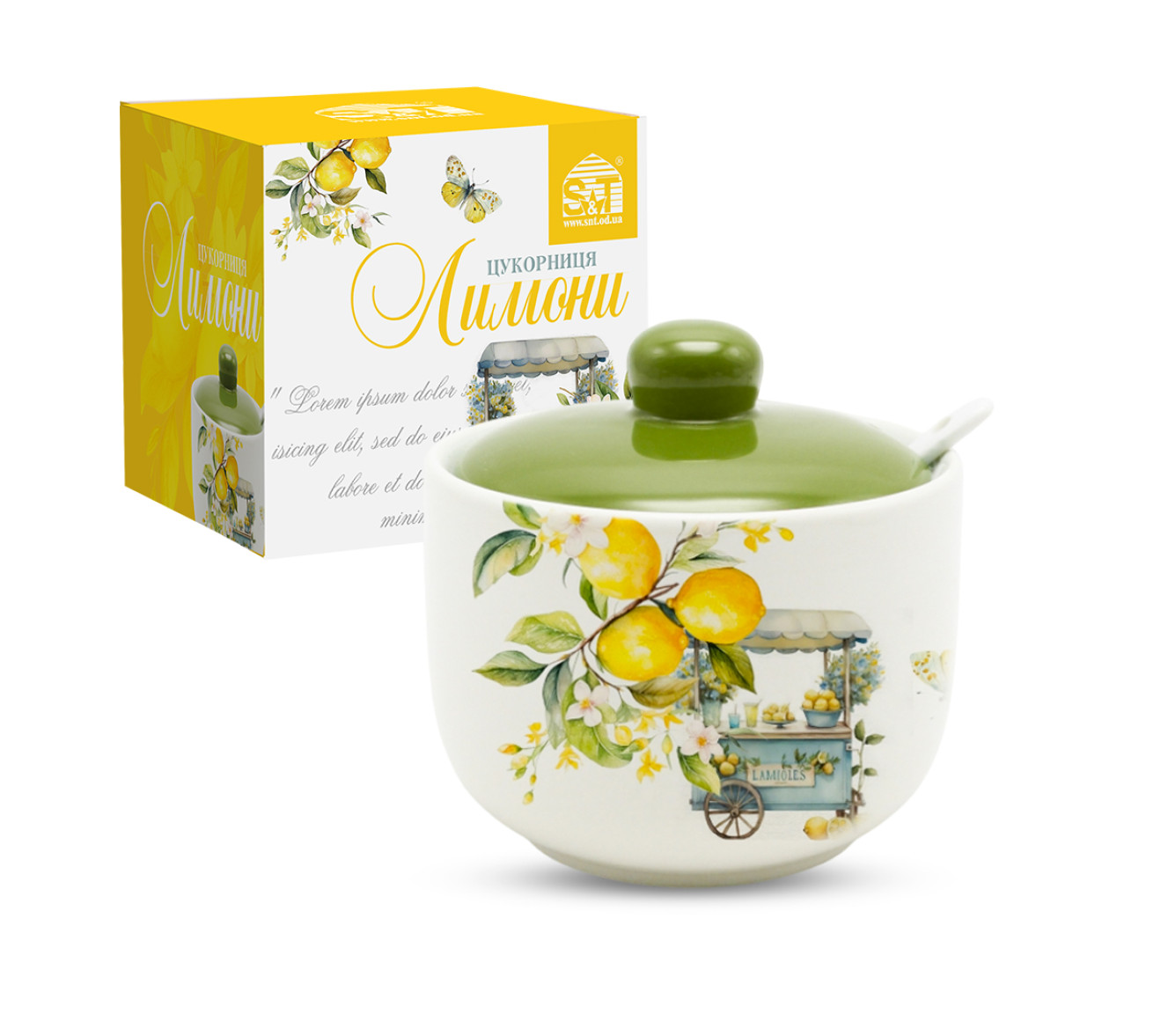 Цукорниця керам. "Лимони" 0,45л з ложкою №700-03-22/S&T/(36) — купити за 192.3 ₴ | Канцелярський Сад