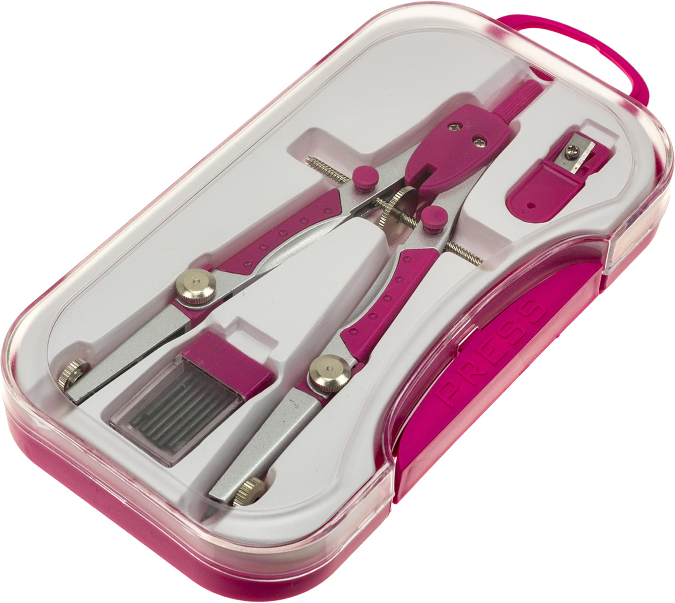 Циркуль "CoolForSchool" Radius+ грифелі,точилка,рожевий,у футлярі №CF81439(12)