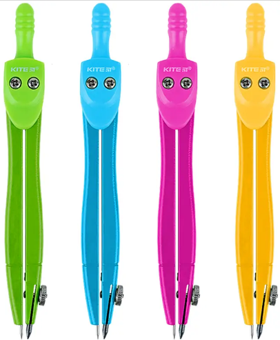 Металевий циркуль Kite Classic K-380 представлений в пластиковому прозорому футлярі, де він нерухомо фіксується. Виріб призначений для креслення кіл і дуг кіл, також може бути використано для вимірювання відстаней, зокрема, на картах. Також, використовується в геометрії, кресленні, для навігації або створення правильного геометричного малюнка. Кріплення рухомої частини циркуля виконані фіксуючими болтами. Ніжки циркуля і пластикові деталі пофарбовані в яскраві кольори. В асортименті представлені рожевий, блакитний, салатовий і жовто-гарячий кольори. Довжина виробу 115 мм.