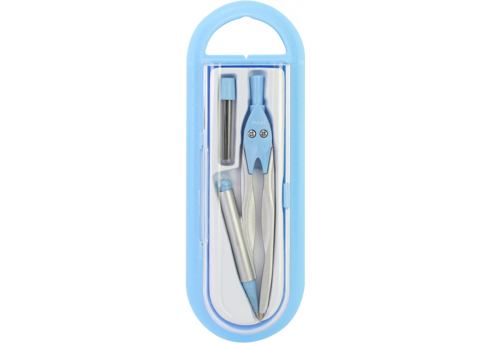 Циркуль "Maxi" 2предм. пенал з лінійкою по периметру, пастельний блакитний №MX81471(12)