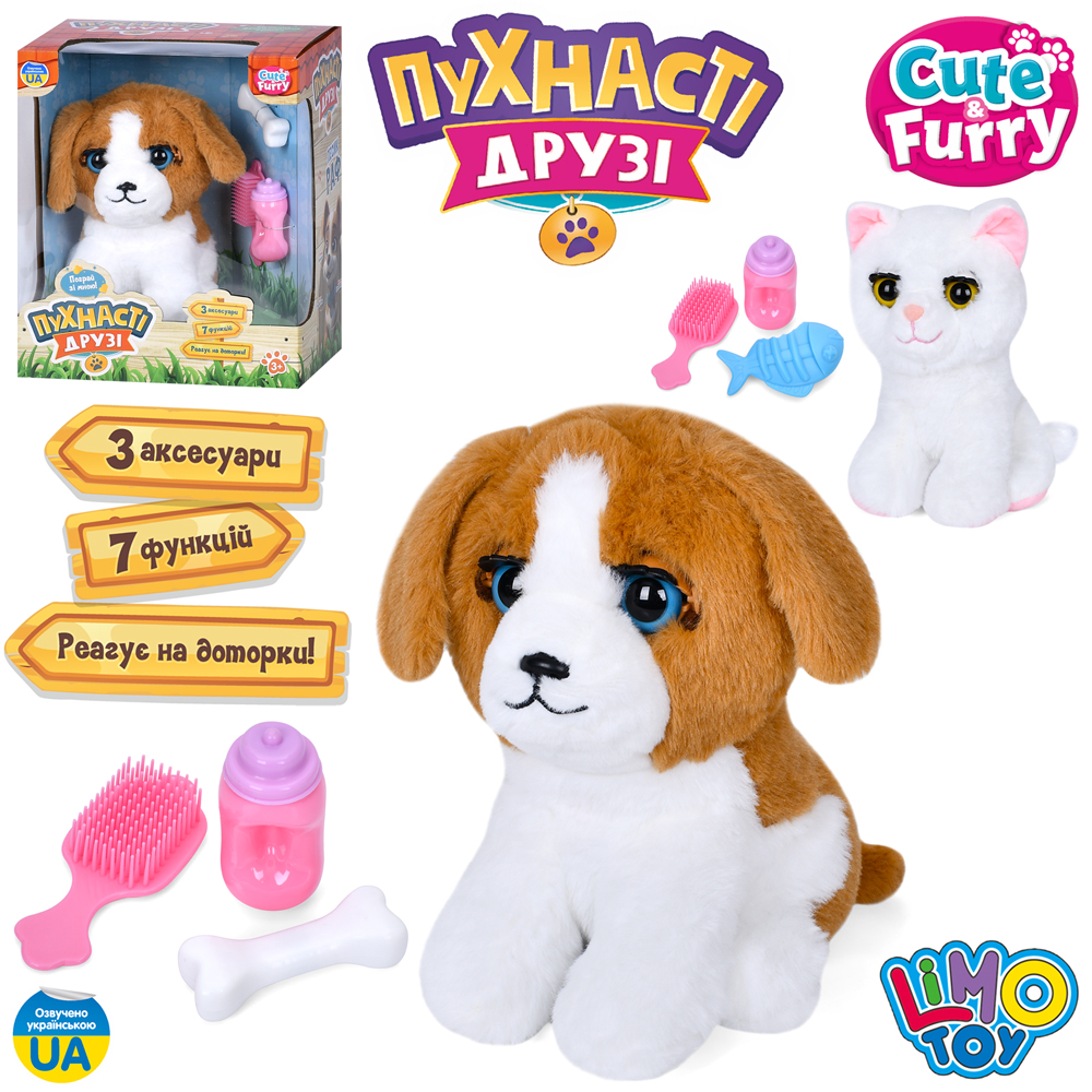 Тварина (собака,кіт) 31х19х12см,сенсор,музика-звук,пісні,засинає,плюш №M 5953 I UA(10)