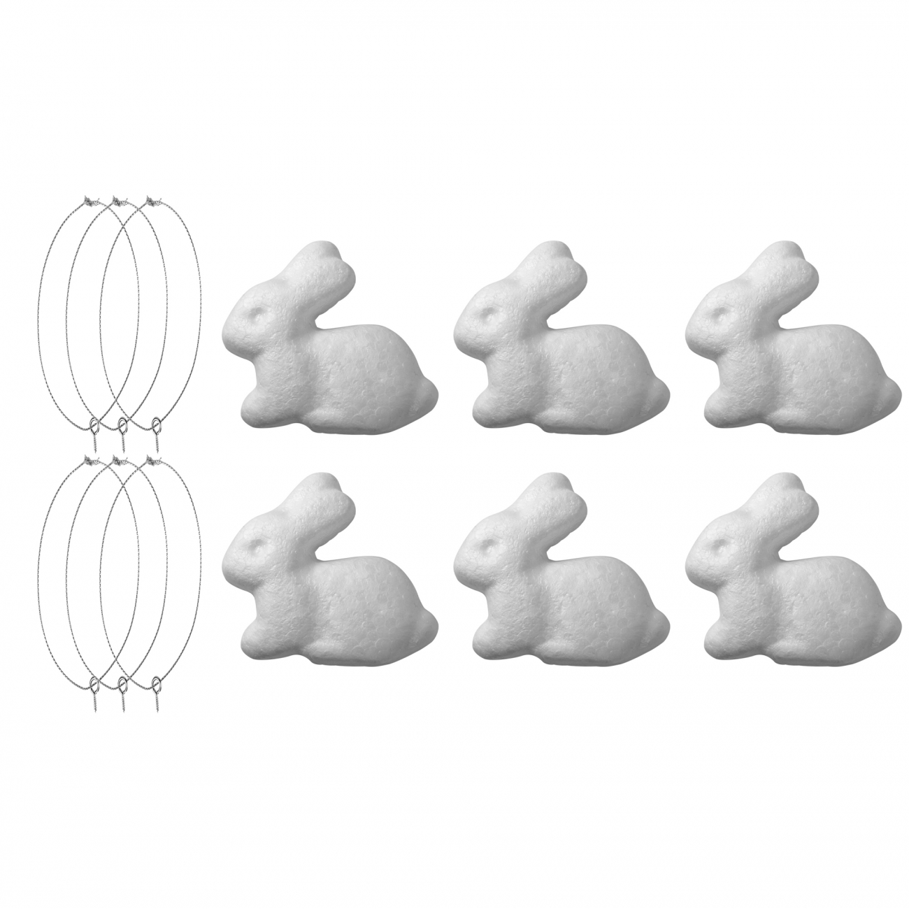 Набір пінопластових заготовок від SANTI у формі кролика – це чудовий елемент декору! Матеріал дозволяє використовувати найрізноманітніші техніки хендмейду, а також художньої творчості. Різні за розміром, формою та тематикою пінопластові заготовки SANTI чудово підходять для творчих занять і з дорослими та дітьми. Для кожного виробу в комплекті йде кріплення і шнурок для підвішування. Характеристики: - кількість штук в упаковці: 6; - довжина: 6,5 см; - ширина: 6,5 см; - 6 комплектов кріплення; - колір білий. Пінопластові заготовки SANTI можна обробити в техніці декупаж, розмалювати художніми фарбами або наповнити дрібним декором і підвісити. Готовий виріб прикрасить будь-який інтер'єр, а також збереже красу на довгі роки.