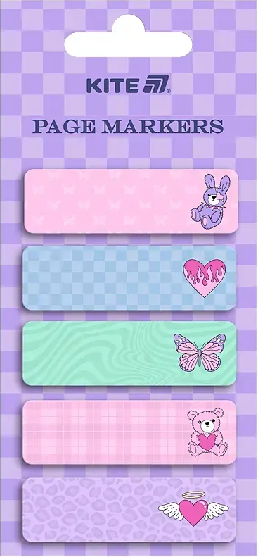 Закладки дуже зручні для створення позначок в записних книжках, документах, книгах, каталогах і т.д., щоб при необхідності легко знайти потрібну сторінку або зазначене місце. Перевага закладок в тому, що вони легко видаляються з поверхні, не залишаючи ніяких слідів на папері. Закладки Kite мають прямокутну форму, паперові, На закладках можна наносити позначки. Розмір закладки 15х50 мм, 5 кольорів. В упаковці 100 шт.