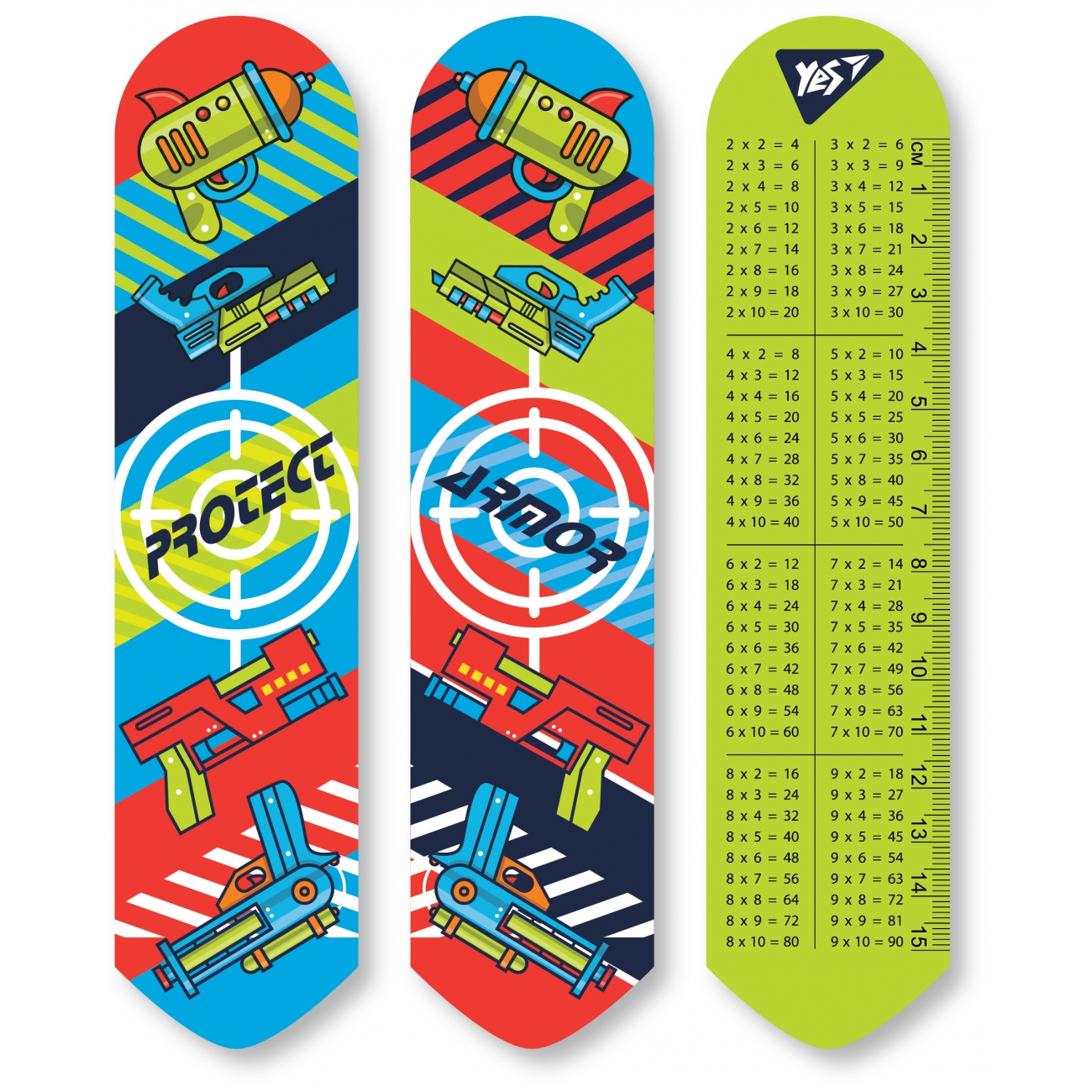 Закладка Blaster, торгової марки YES з ефектом 2D, вкаже потрібну сторінку в підручнику або книзі, та виручить в класі! Характеристики: - 2 змінних тематичних зображення; - таблиця множення на зворотному боці; - лінійка (шкала 15 см) на обороті; Розмір: 19х4,5 см. Матеріал: пластик. Упакована в індивідуальний полібег з підвісом. Закладка YES з ефектом 2D відмінне доповнення однойменної колекції!