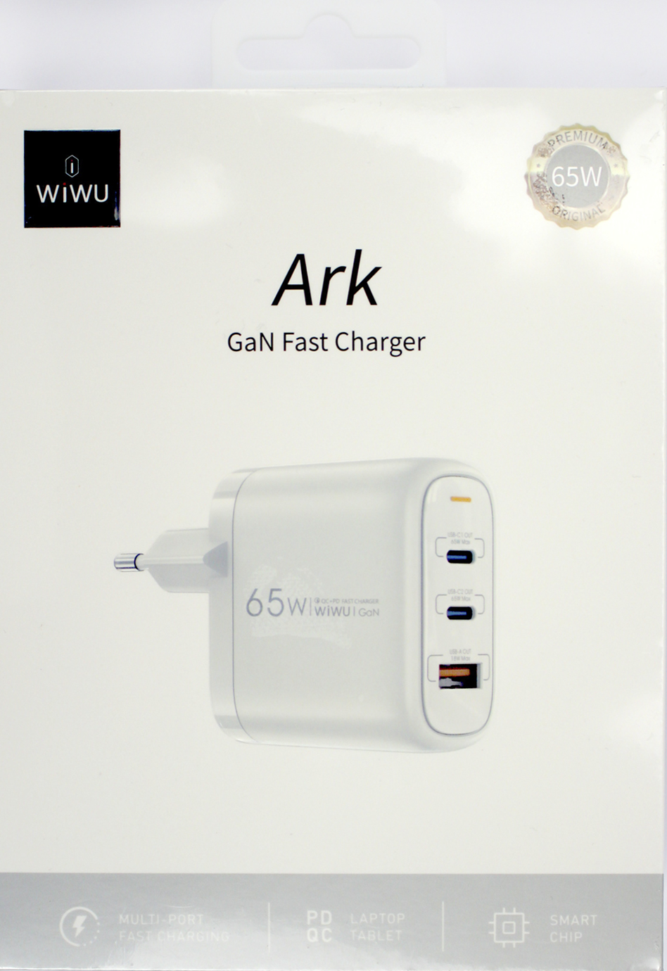 Зарядн.прист.WIWU №Wi-U024 USB+2Type-C 3А 65W ArkQC+PD GaNFastCharger шв.зар.white/Breidon